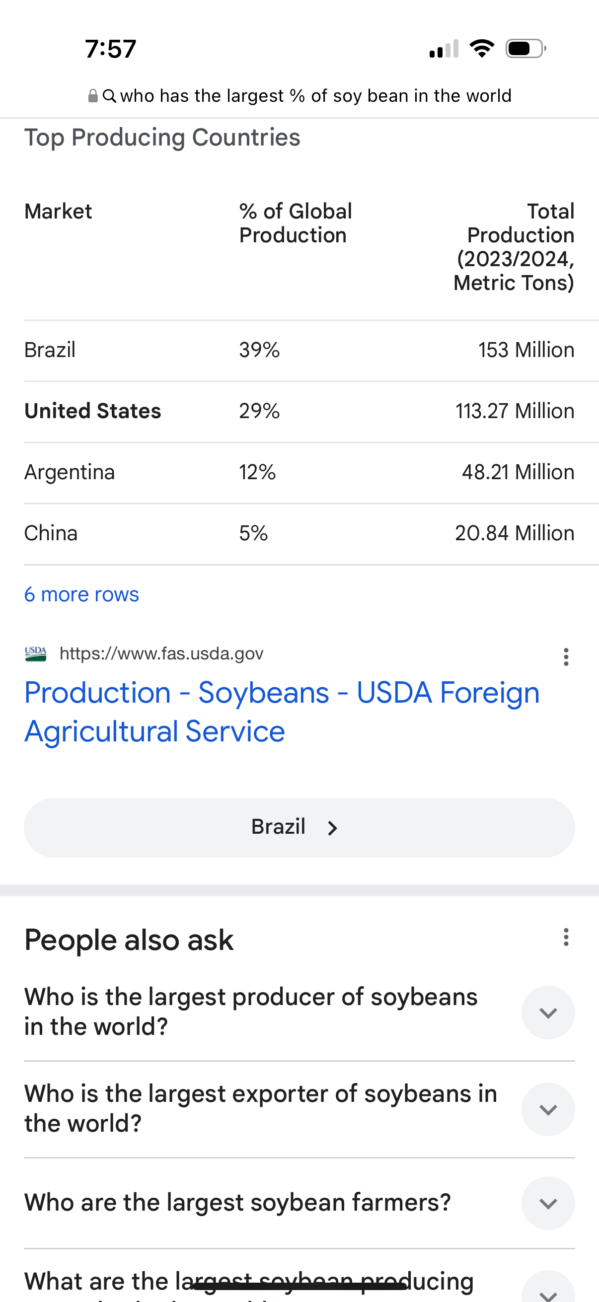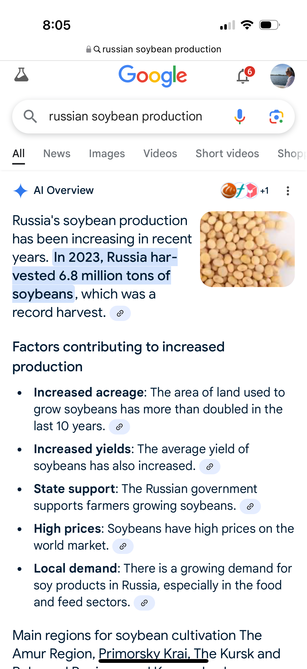 I totally agree that tariff is a two way street. But soybean might not be the best example. So Trump raised tariff and pissed China off. So China bought from Russia, who produced 6.8 million metric ton in 2023, when China needs to import 99.41m in 2023.