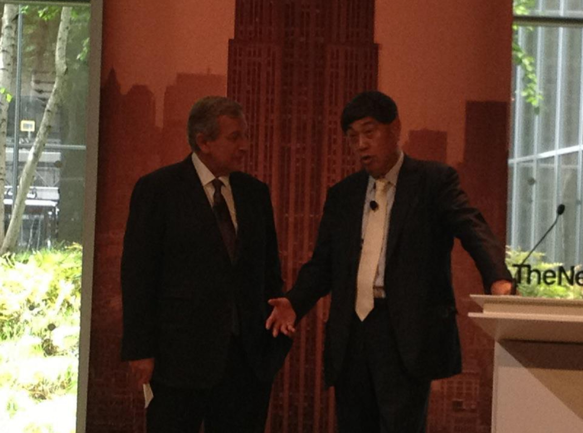 Steve Orlins (1950-; 欧伦斯), president of the National Committee on United States–China Relations since May 1, 2005, got a bloody ear; the Money Honey Maria Bartiromo is moderating on econ, with Kantor, Mundie, Slaughter n Wolf; Richard Attias with Wang Boming; Michael Bloomberg on stage and off.