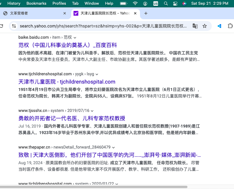 范权早年毕业于北京协和医学院.1965年, 范权下乡在蓟县“农 村医疗队”工作,1966年文革开始后被“揪”回医院“斗争”. 1966 年 8 月下旬, 红卫兵抄了范权的家.他们把范家的书堆在门外焚烧.孙 女士被强迫跪在火堆旁边.她的脸被烧焦. 红卫兵还用她家里的面包裹 上大便强迫她吃下.邻居看到她被折磨的经过.