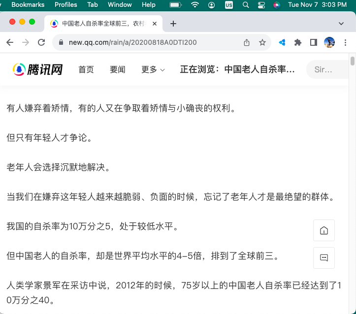 中国老人自杀率全球前三,农村老人自杀怪现状 | 2020-08-18